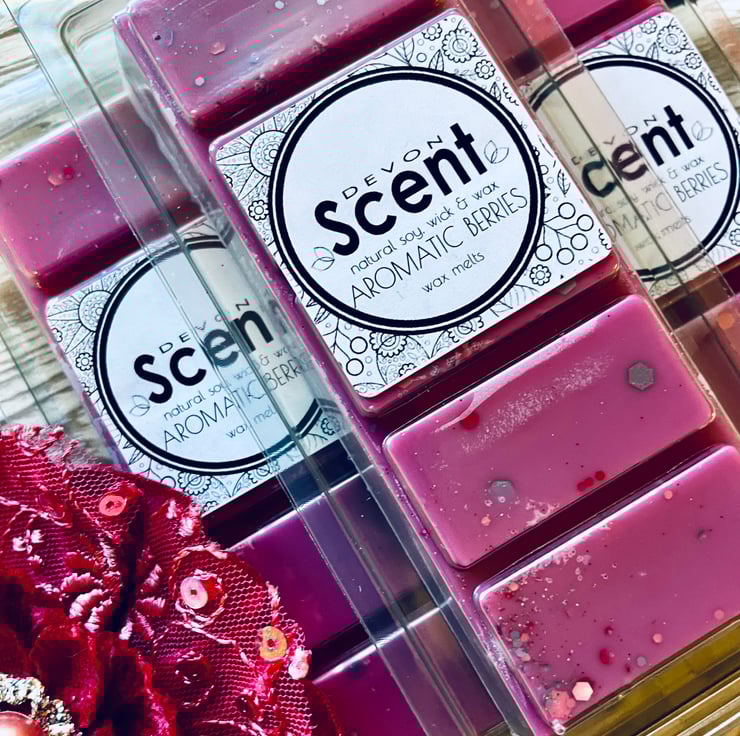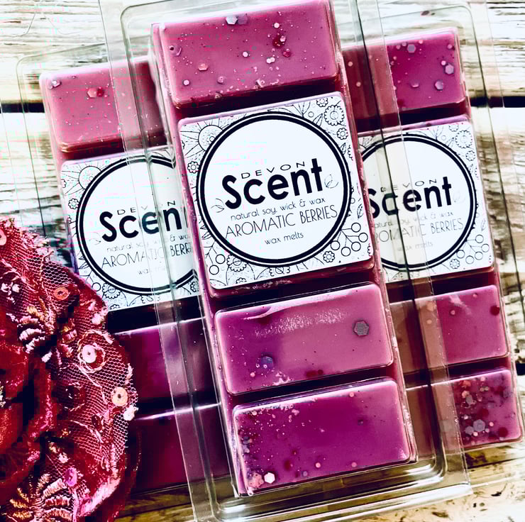 Our highly fragranced Aromatic Berries Snap Bar Wax Melts have a jammy blackcurrant scent with citrus hints settling on a green floral heart of Bulgarian rose and leafy notes, with touches of berries and peppery elemi on a base of pine, guaiacwood and musk.