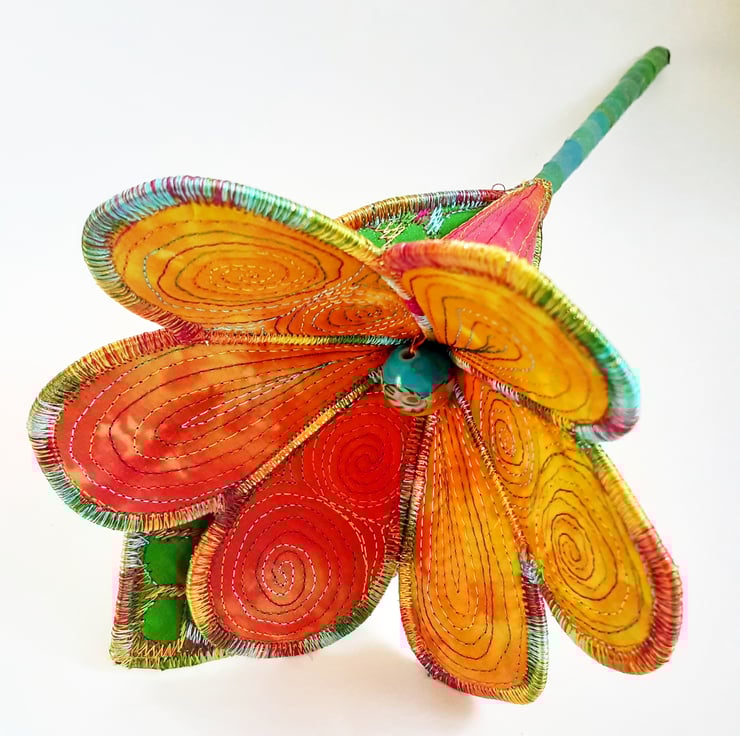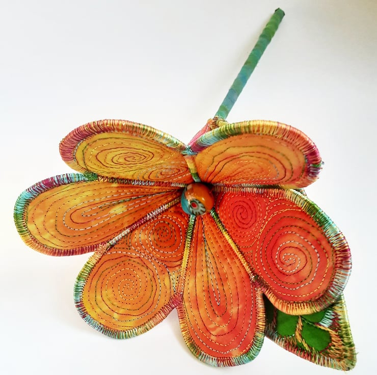 This is a handmade machine stitched textile flower