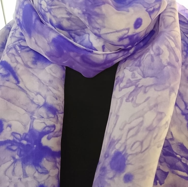 I have used steam set dyes to create this very original scarf, every scarf that I paint will be a one-off as although I can use similar colours every pattern created will be unique with the way in which I paint them.