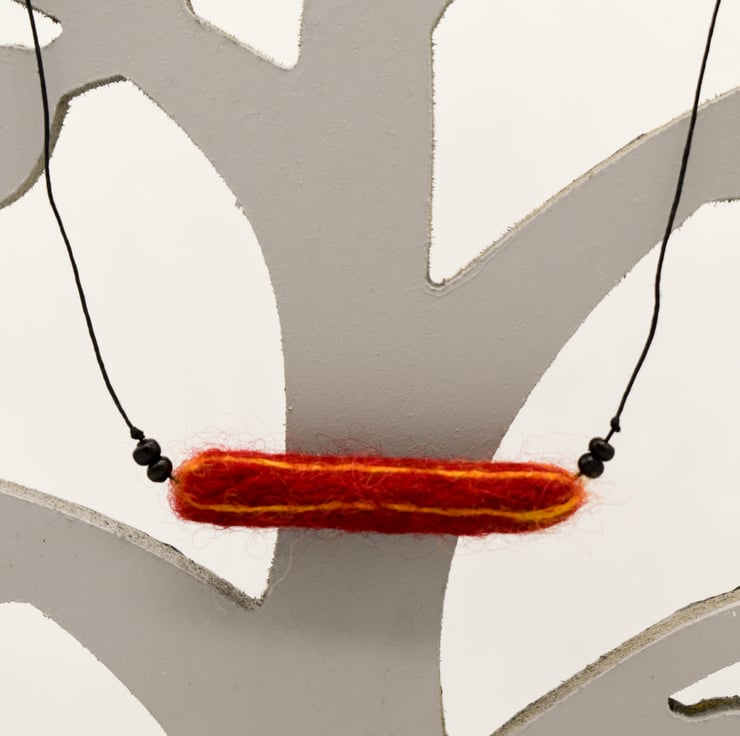 The woollen bead is approximately 10 mm in diameter and 56 mm long and is really lightweight, ideal for anyone with neck issues.