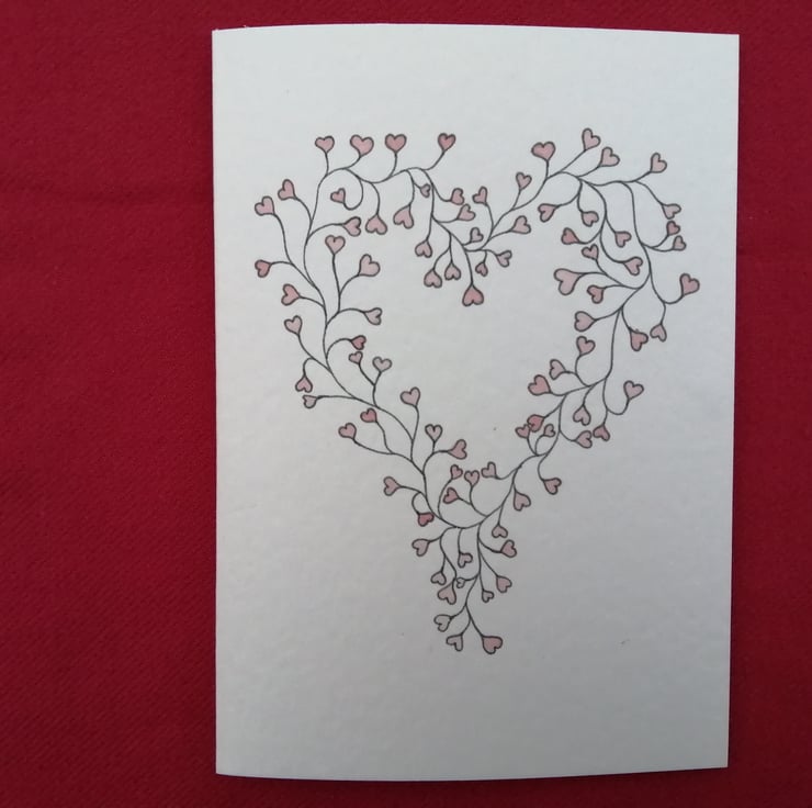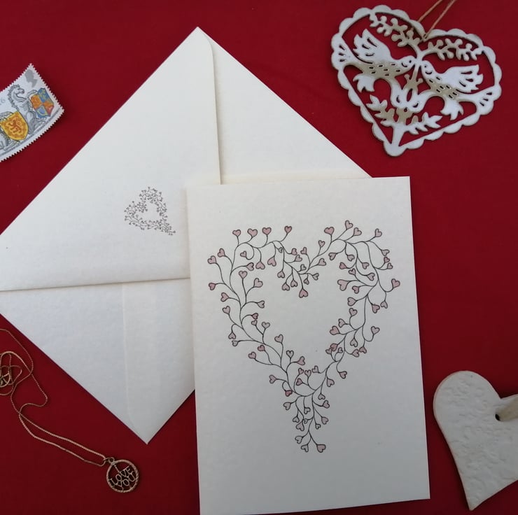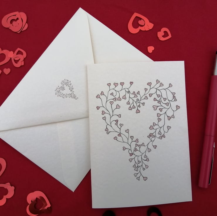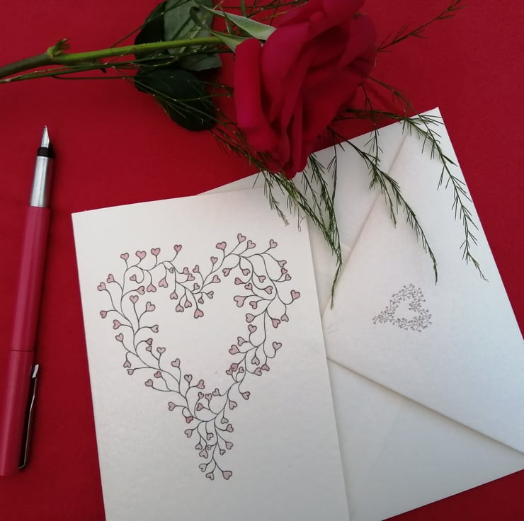 I have often thought that the leaves I draw on my vines are quite heart shaped so it seemed fitting to turn them around and make them into a Valentine’s card.