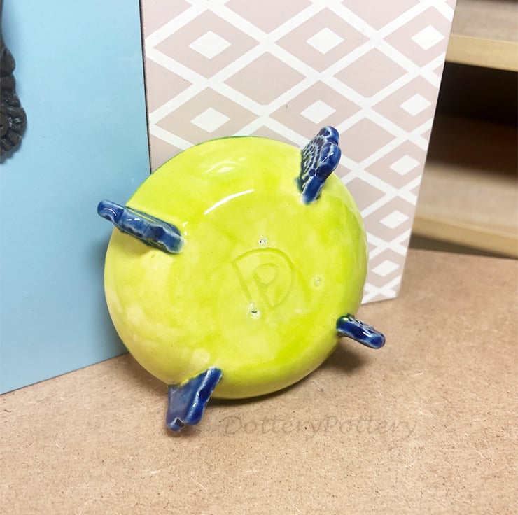This teeny ceramic dish is made from white earthenware clay and finished with bright pattern. Perfect as trinket dishes, incense cone bowls or even for teeny little dips! They have been fired in an electric kiln to 1100 degrees.It measures 7cm diameter x 2cm tall. They are quite tiny, so please check measurements if you are in doubt. Was £8.50 now £4.25