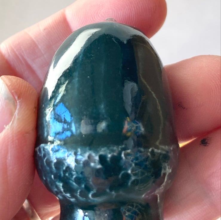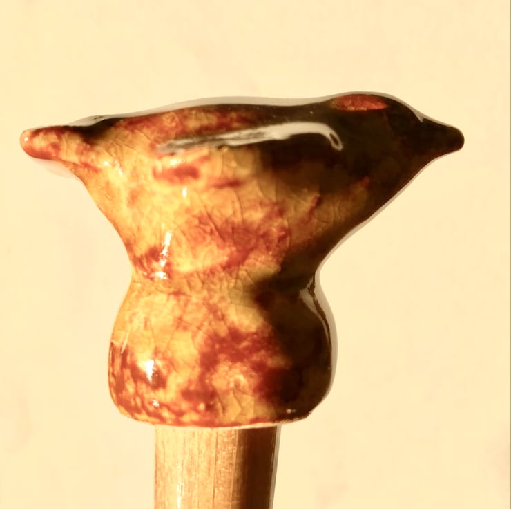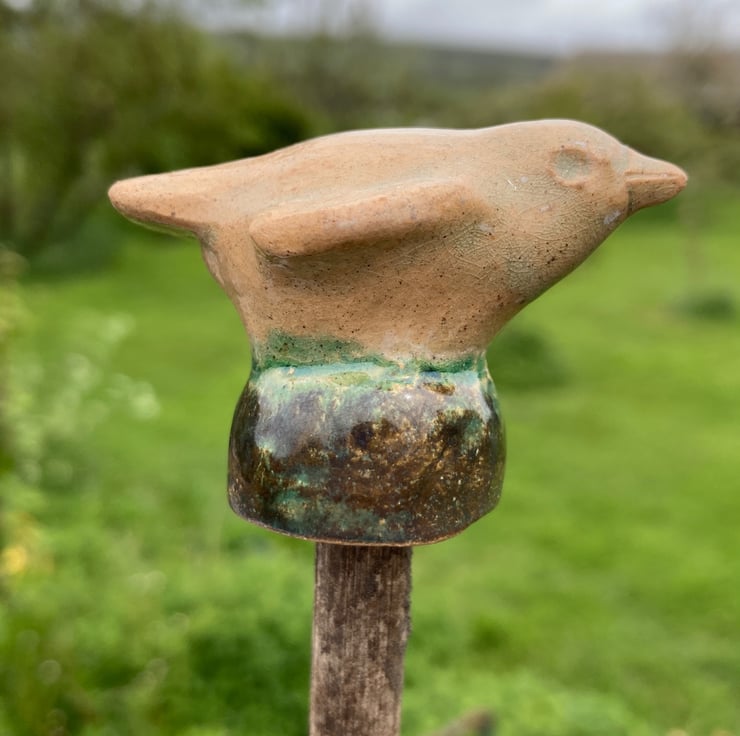 Set of 6 handmade ceramic cane toppers for safety, fun or to mark a plant. There are in bird design with 15mm aperture, three in an acorn shape for up to a 12mm cane.