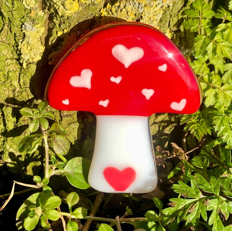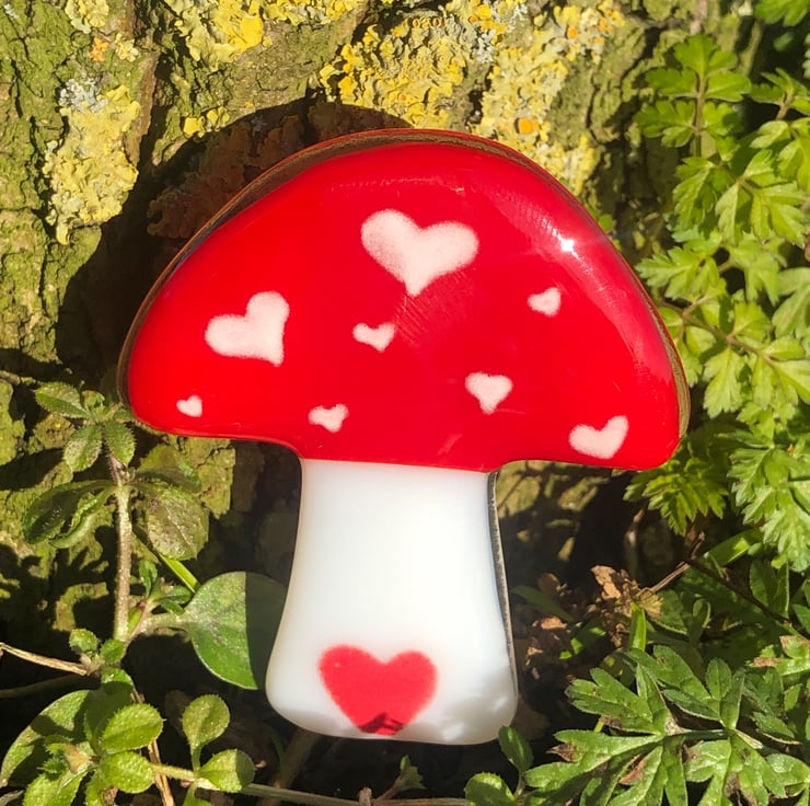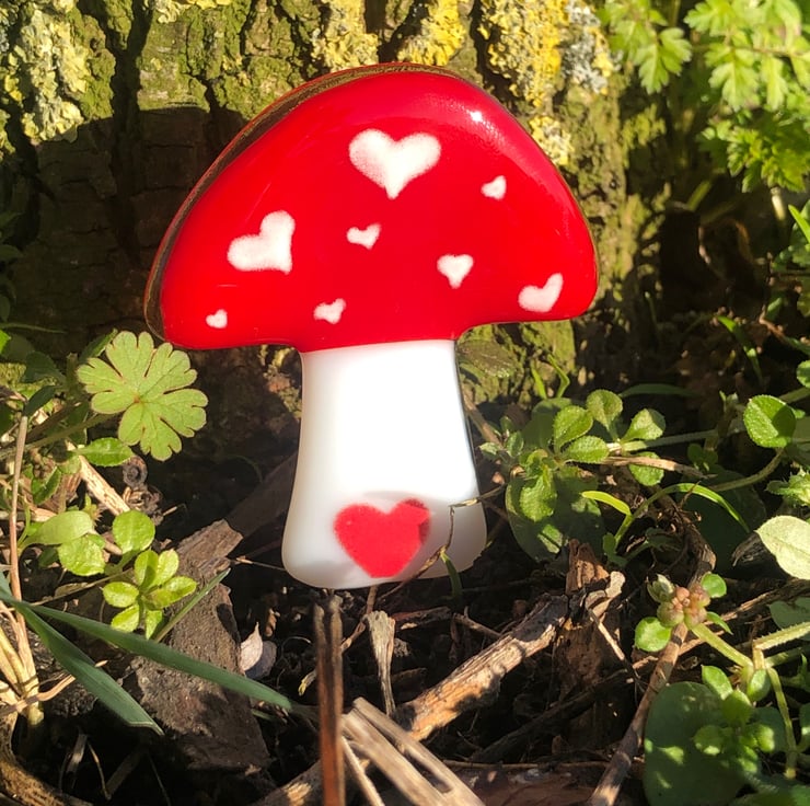 The Glass Mushrooms are hand cut and hand painted so each one is unique .