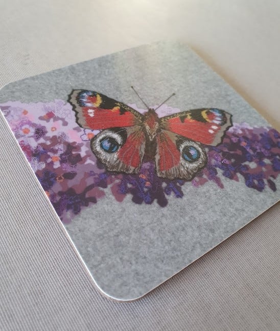 The designs are scanned by my local printer, and digitally printed onto coasters, placemats, tea towels, tote bags and greetings cards. I also make handmade cards and beautiful hanging decorations for your home.