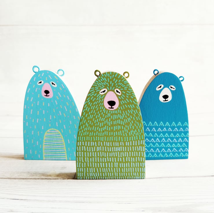 Inspired by my fascination with bears, it has painted eyelets for ears, measures approx 5.6cm x 8.5cm and is made from high quality birch ply.