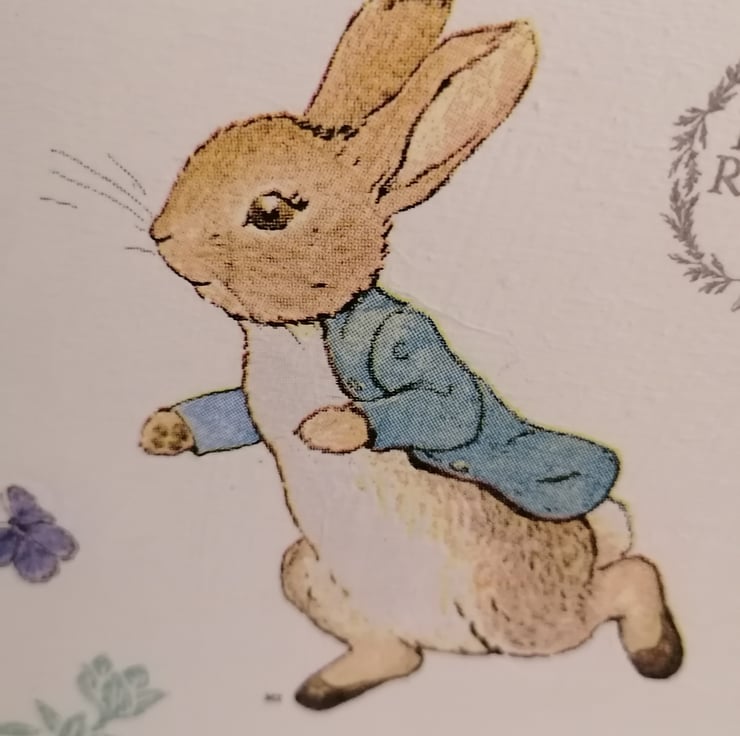 Painted in Farrow & Ball House White then decorated in Vintage Peter Rabbit Designs...