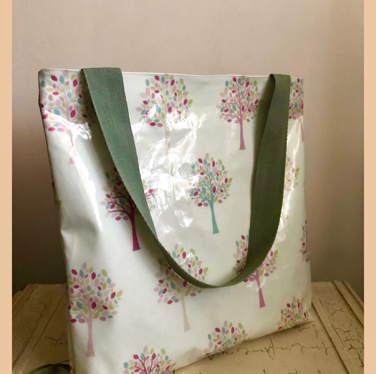 Beautiful oilcloth tote bag in Pink Orchard design. This bag is fully lined and has a box base to retain shape. A major benefit to this amazing bag is the recessed zip which gives peace of mind that your bag is sealed, keeping everything inside it safe and secure.