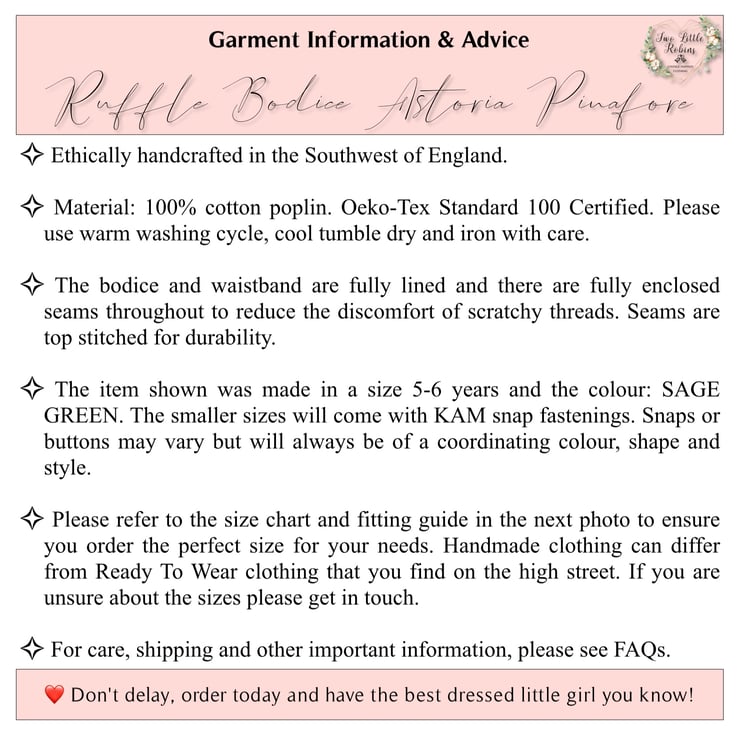 The Astoria pinafore forms part of the Essential Collection from Two Little Robins and is the perfect staple dress for every little lady's wardrobe. For those who embrace slow fashion, this pinafore dress can be worn on its own in the sunshine and with knitwear in the colder months. Such a versatile piece, perfect for all year round!