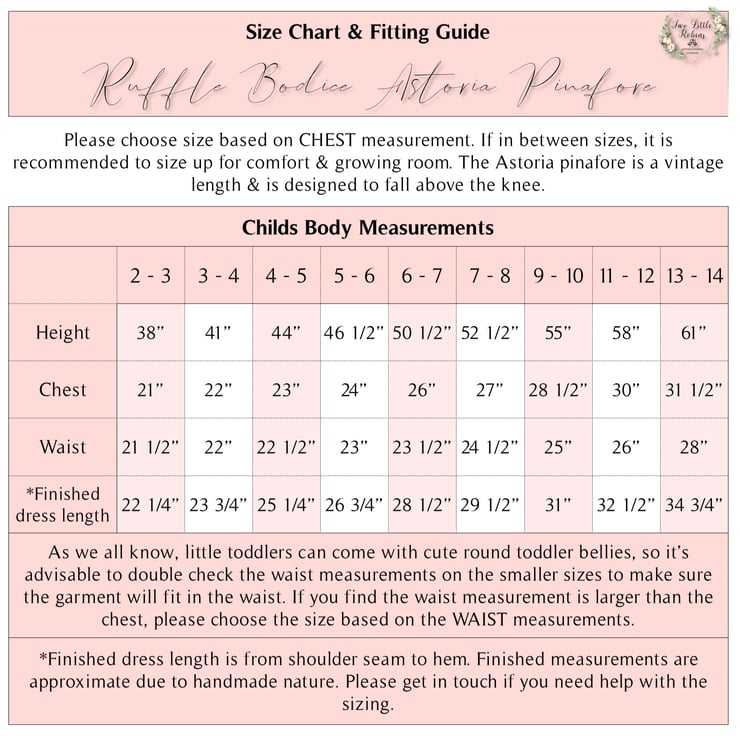 This pinafore could also be made in a simple bodice version without the ruffles or without the bow sash. Please message me for a price list.