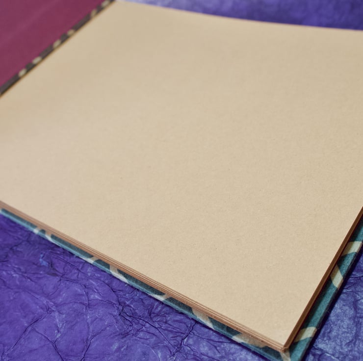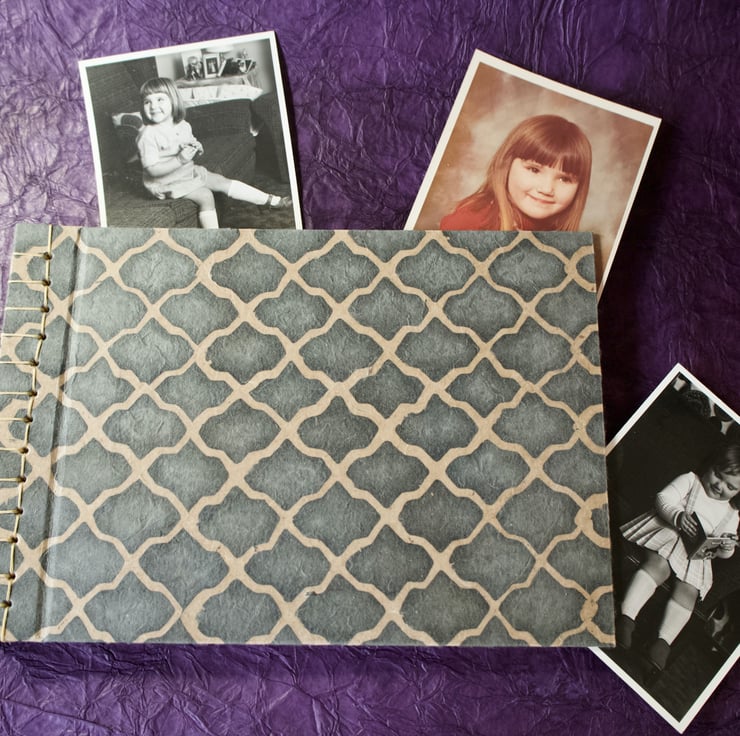 Stab-bound Photo album with handmade Nepalese paper cover and Kraft paper pages.