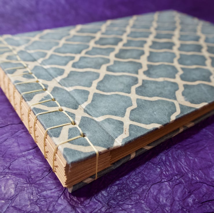 - Japanese stab bound spine hand sewn with waxed linen thread for strength