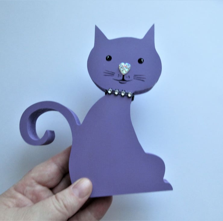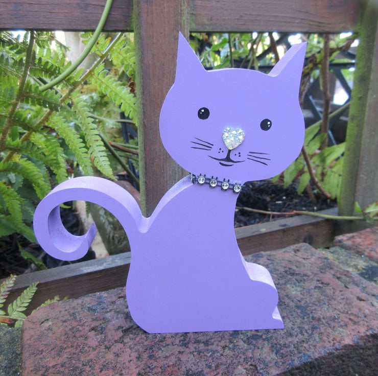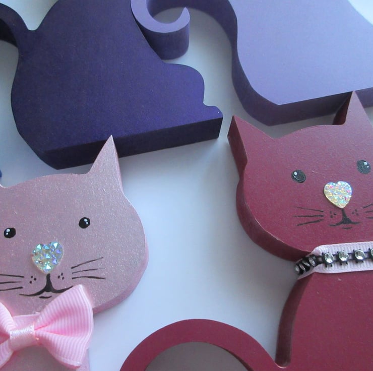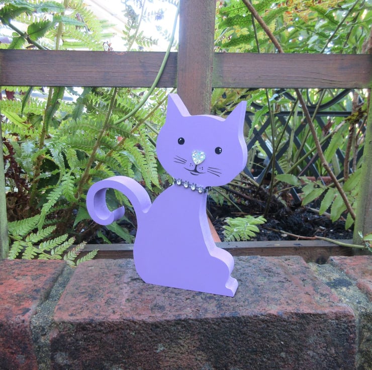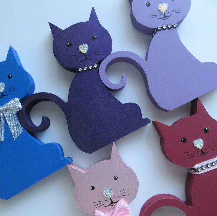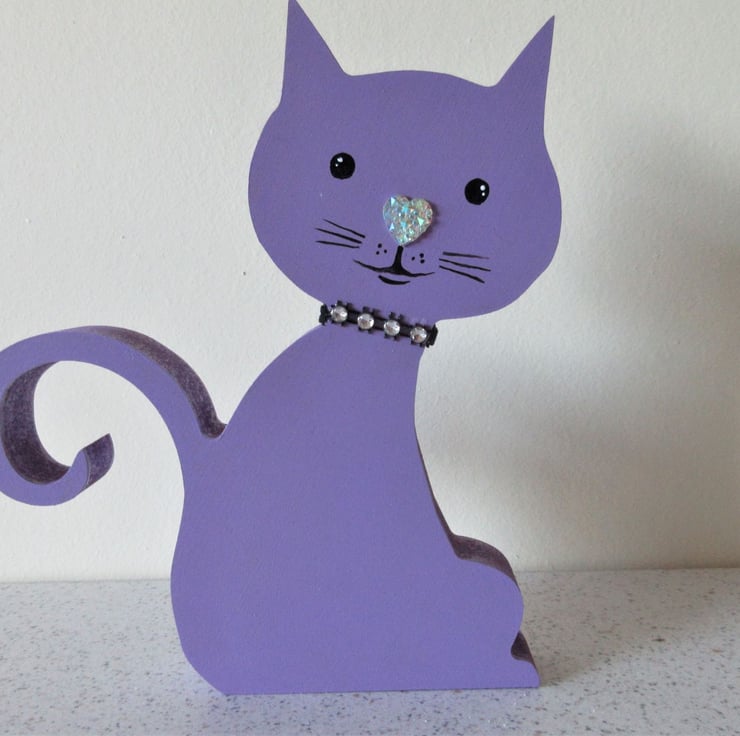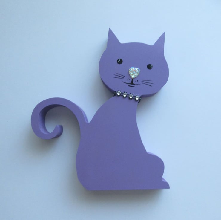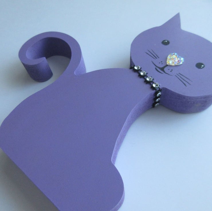 This is an MDF cat shape, which has been hand painted in acrylics.