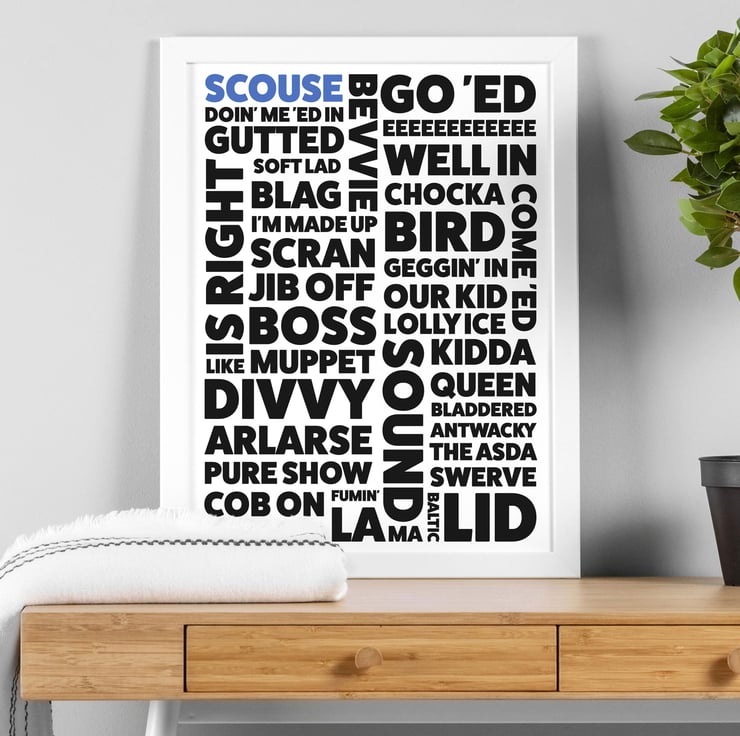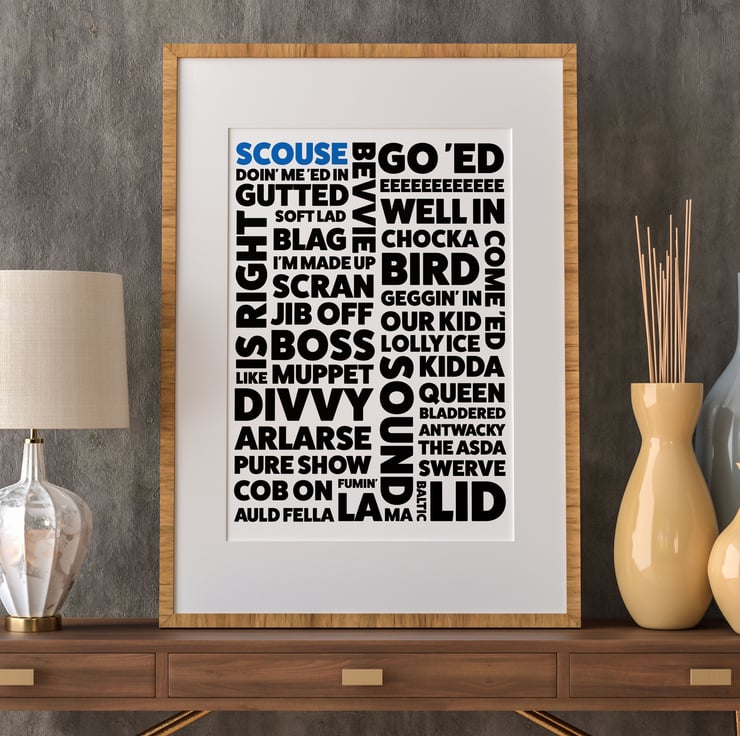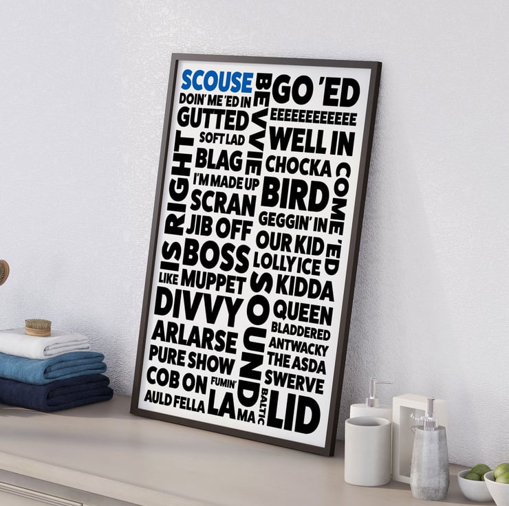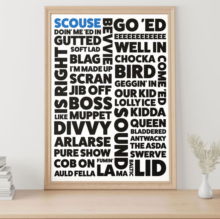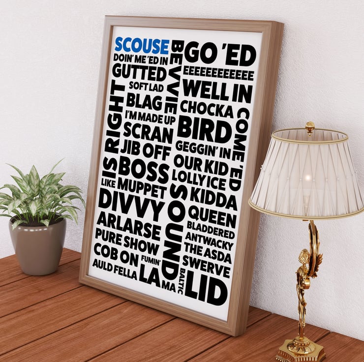 Scouse, Scouser, Liverpool, Merseyside dialect, phrases, sayings print, wall art
