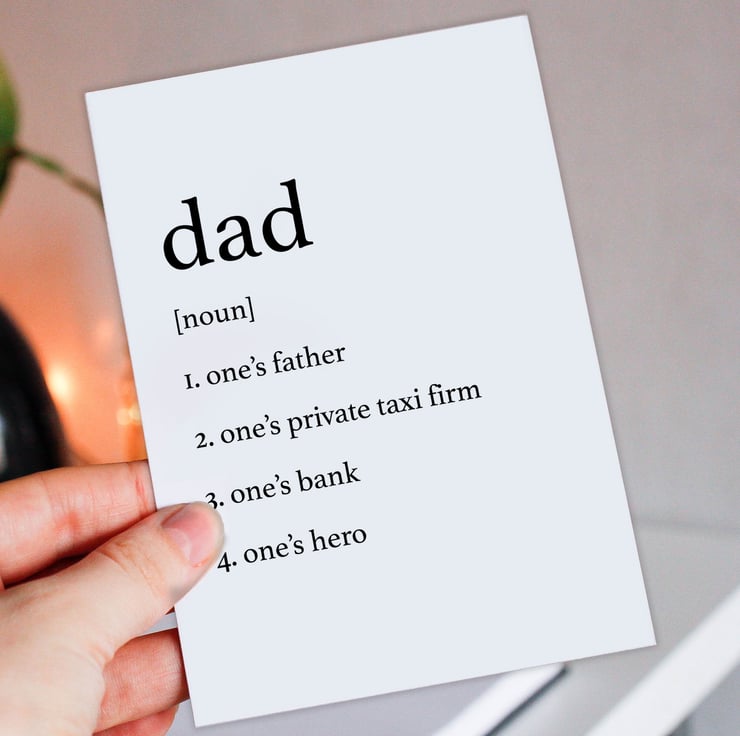 Dad, father Father's Day card: Dictionary definition of father or dad (Size A6/A5/A4/Square 6x6")