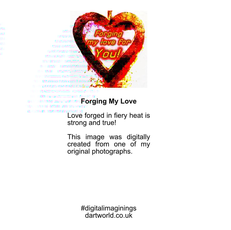 Four of my Valentine cards are based on this red hot heart image, so do take a look at the others. The card is 140 mm (5.5 ins) square. It is blank inside and the reverse has a smaller image with a few details. It is supplied with a plain white envelope.