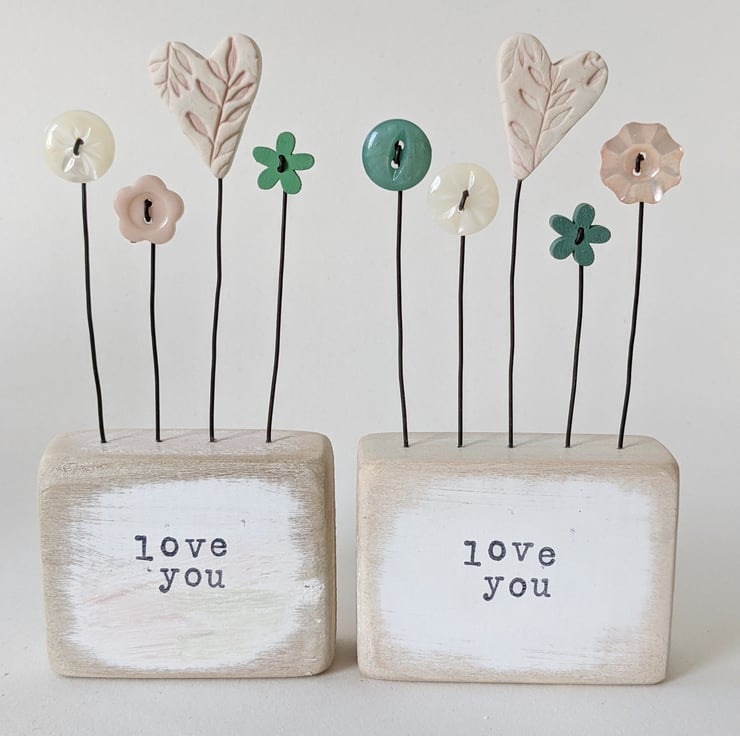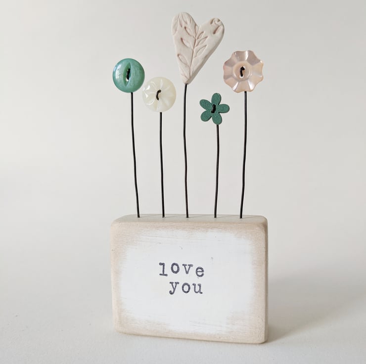 The hand stamped words on the front say 'Love You'.
