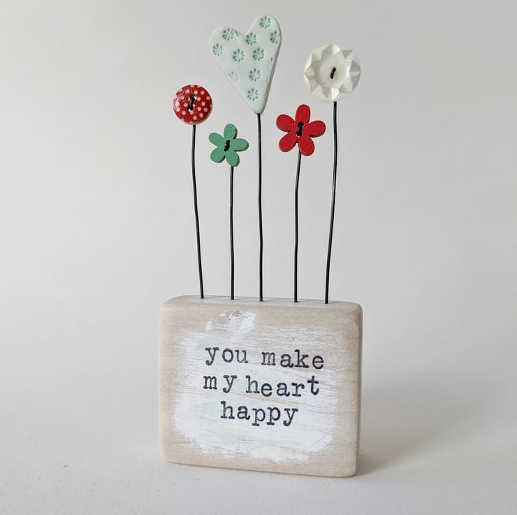 The hand stamped words on the front say 'You make my Heart Happy'.