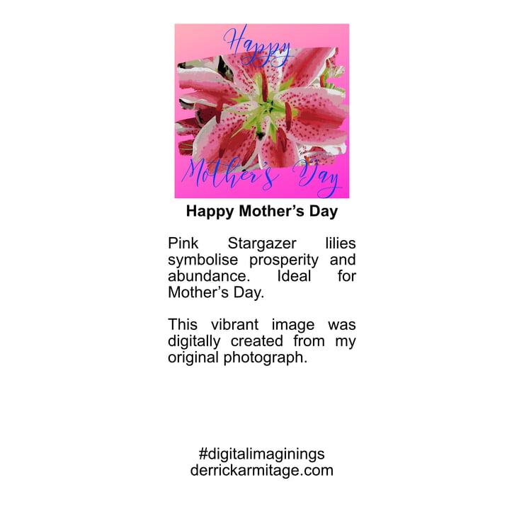 Pink Stargazer lilies symbolise abundance and prosperity which seem wonderful hopes to wish for your Mum. So why not get a big bunch of them to accompany this card?