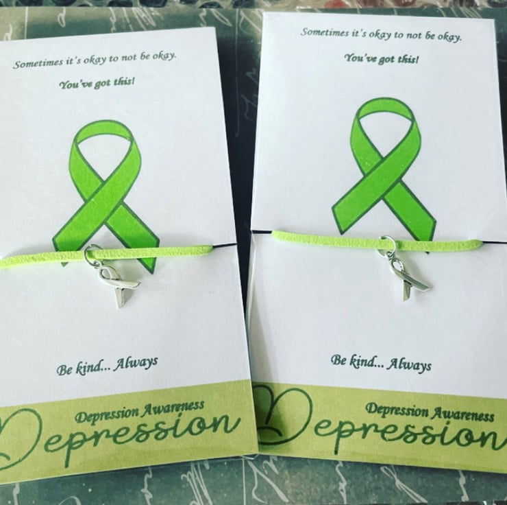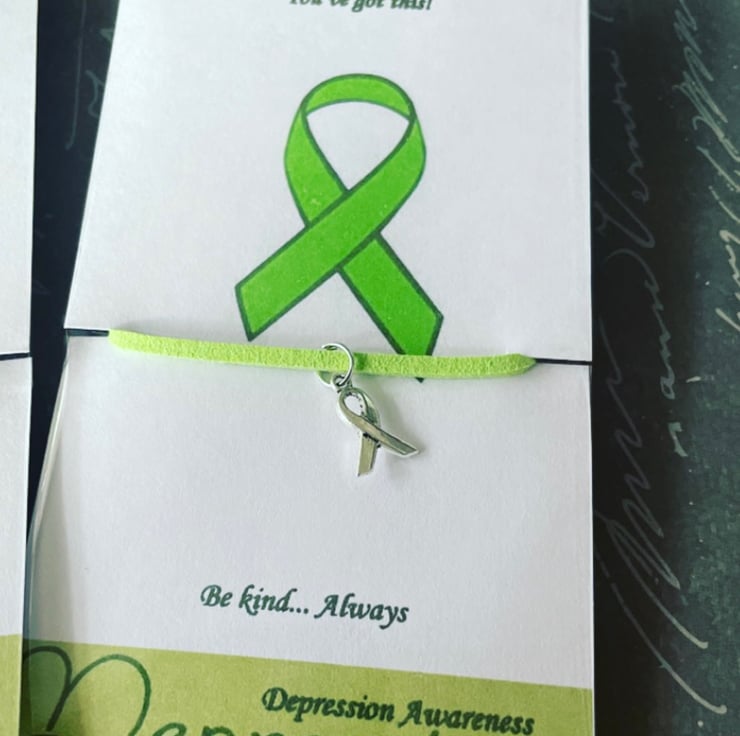 Suede effect corded bracelet with ribbon charm