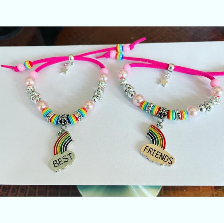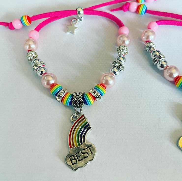 Suede effect corded matching best friend charm bracelet interlocking charms
