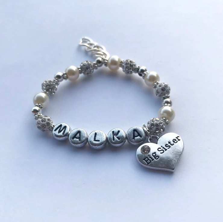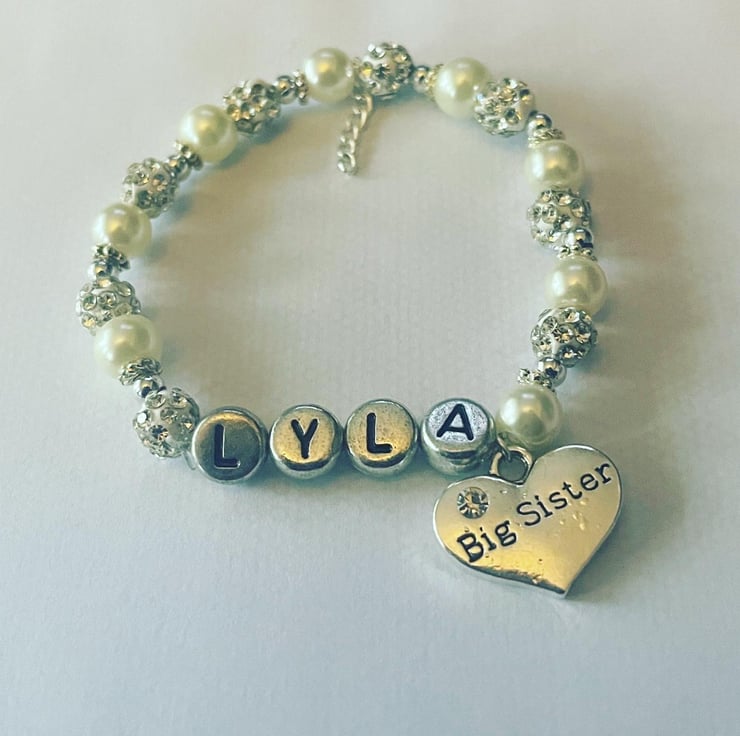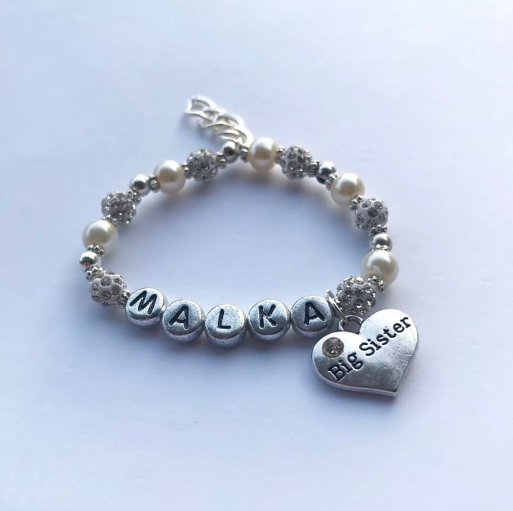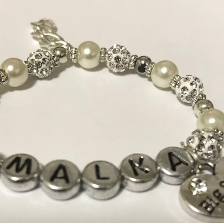 Shamballa and ivory stretch beaded bracelet with personalisation