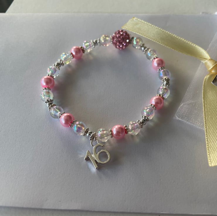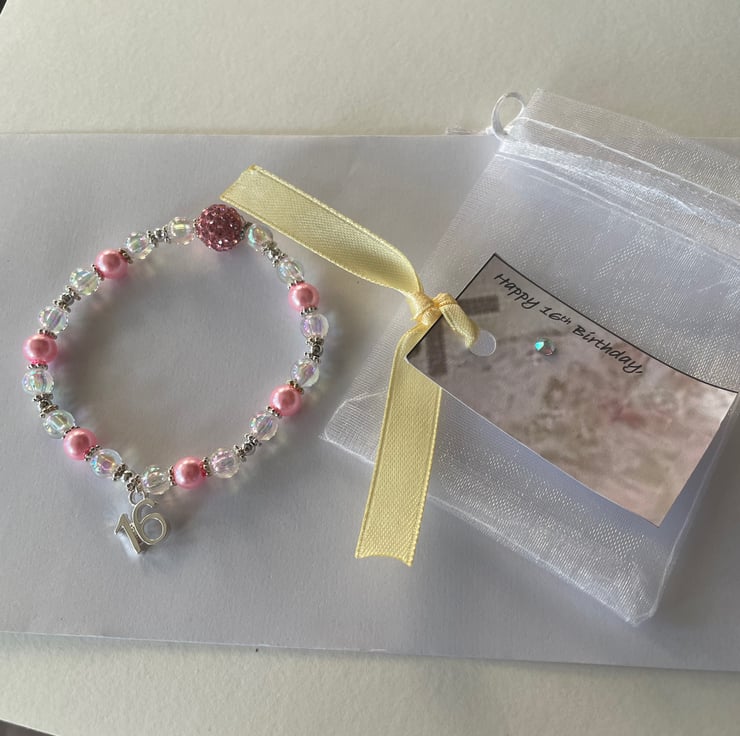 Ab crystal beaded and pink bracelet