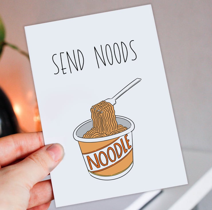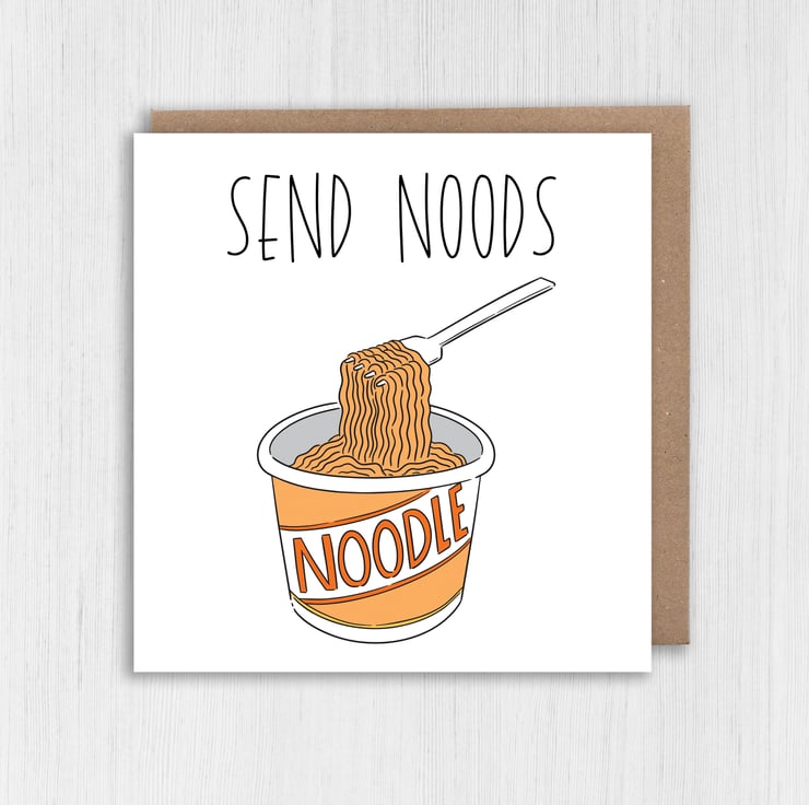 Funny Valentine's Day noodles card for wife, husband, girlfriend, boyfriend: Send noods, send nudes (Size A6/A5/A4/Square 6x6")