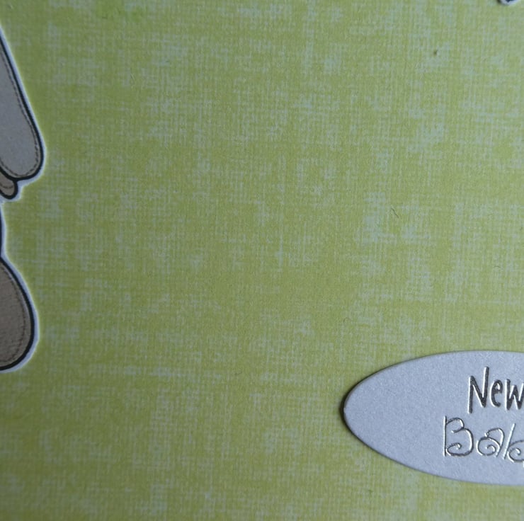 An oval greeting with the words 'New Baby' has been added which means that the card is suitable for any new arrival. The inside has been left blank for your own message.
