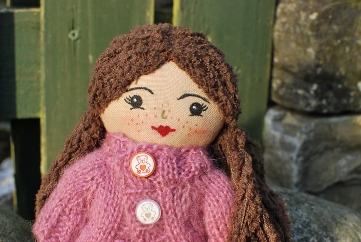 Spring's dress is made of pure cotton and is removable - to undress carefully remove arms from sleeves first and then pull down. To dress the doll put the legs through the opening first and then gently pull up through the body and then dress the arms. To make her feel cosy and warm she comes with hand knitted cardigan made with pure wool.