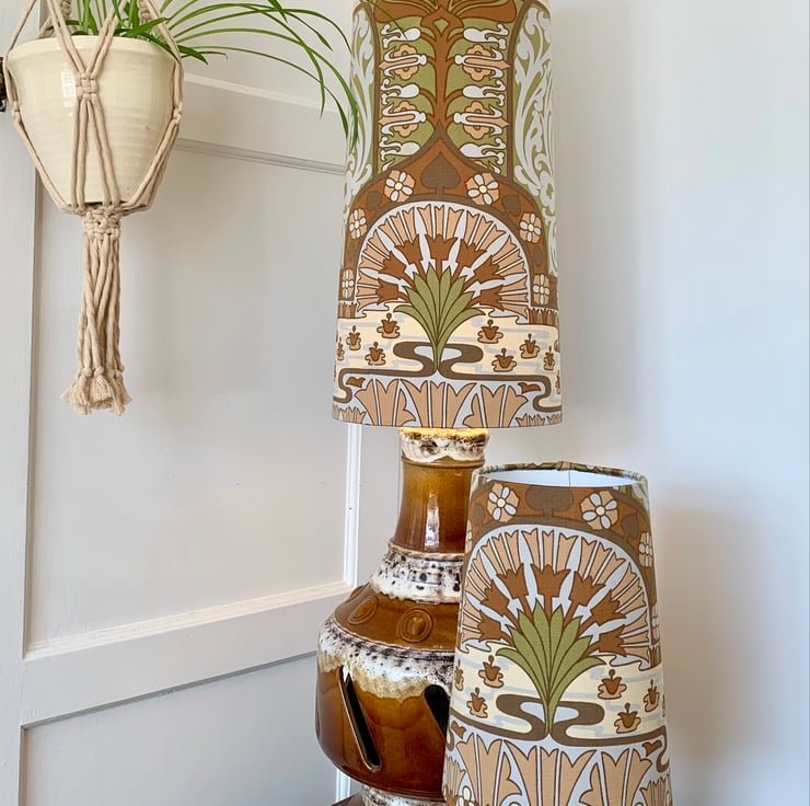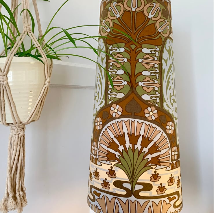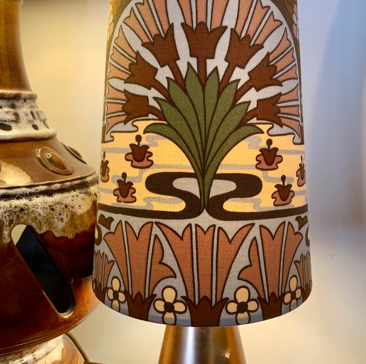 70s Art Nouveau Style Grey Brown WATER GARDEN Heals vintage fabric Lampshade - striking fabric for a lampshade in a modern, vintage or retro home.The fabric was designed by David Bartle for Heals of London in the 1970s s