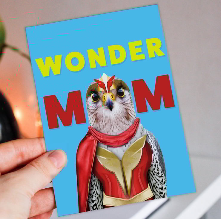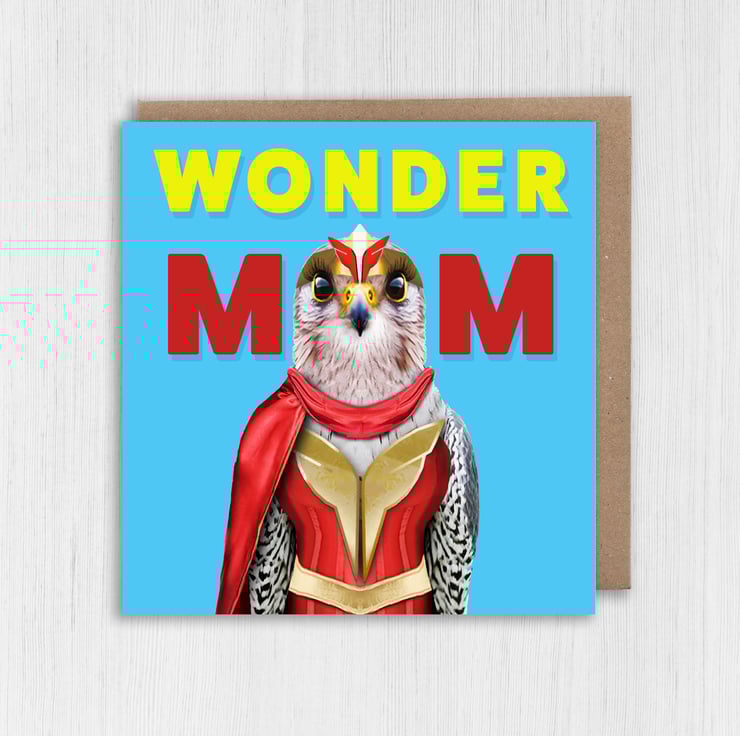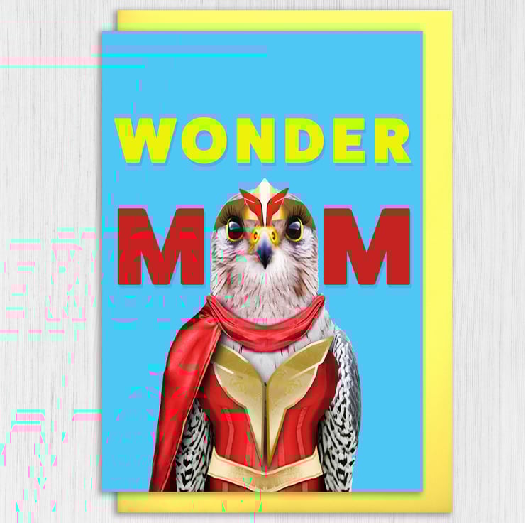 Falcon in clothes superhero, super mum, super mom birthday card for mum, mom, mother: Wonder Mum, Mom (Animalyser)