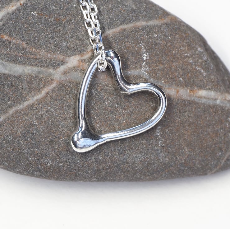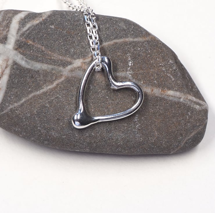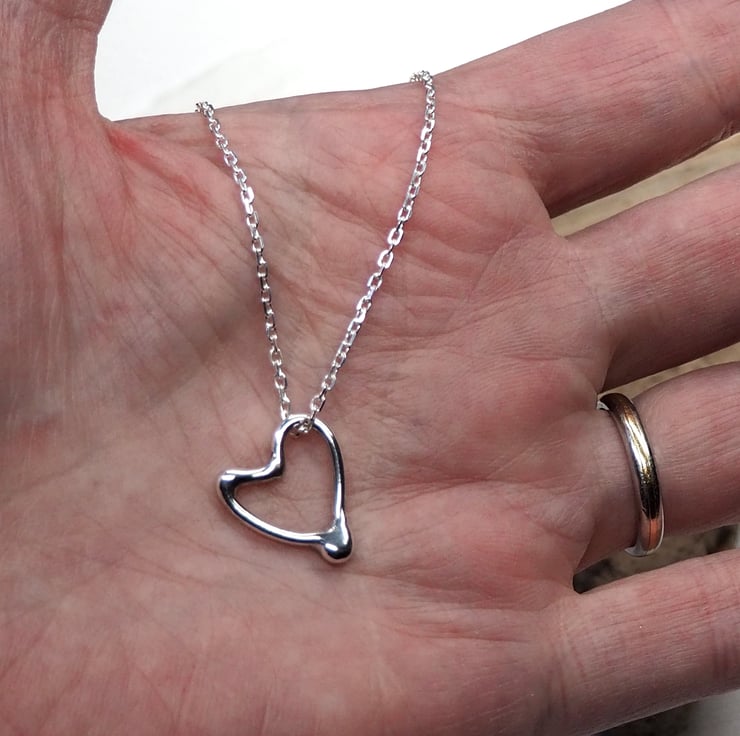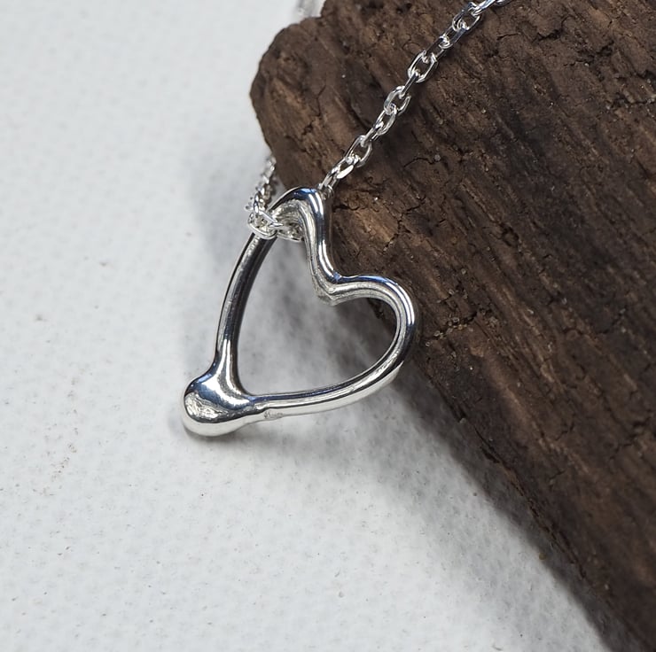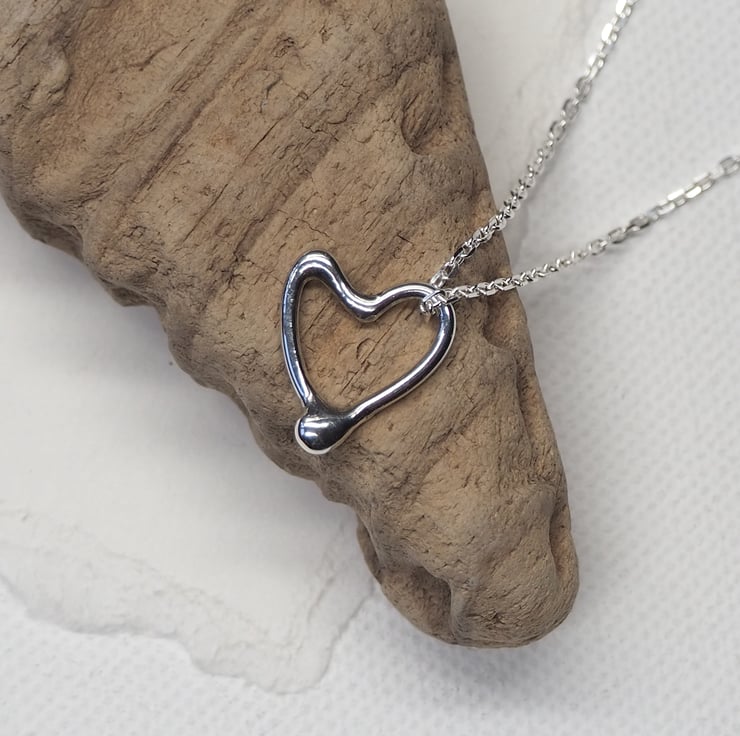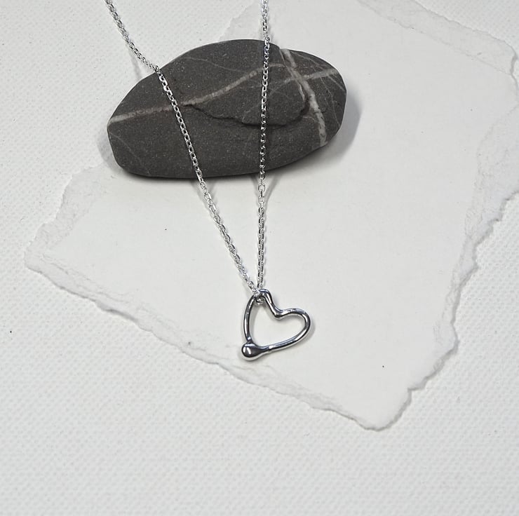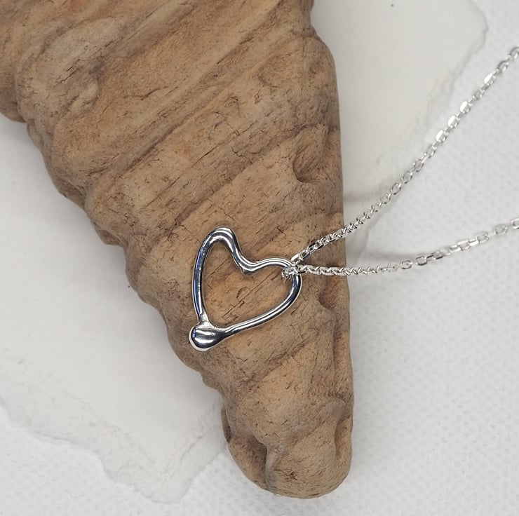 The heart has been free formed and fused from Argentium silver 935 wire, to create an organic abstract shape. I've kept it simple by hanging the love heart directly onto a sterling silver diamond cut trace chain. This allows it to move around freely. The silver heart has been polished to a bright shine to finish.