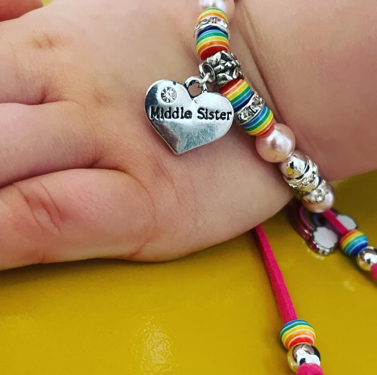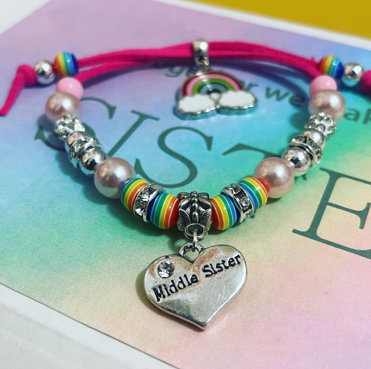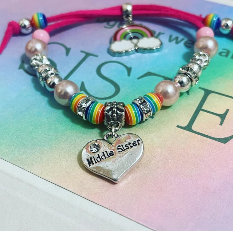 Suede effect cord with rainbow bead and charm and shamballa bead detail
