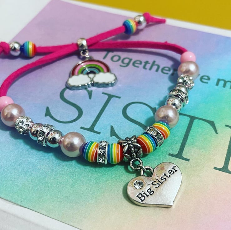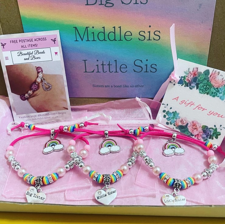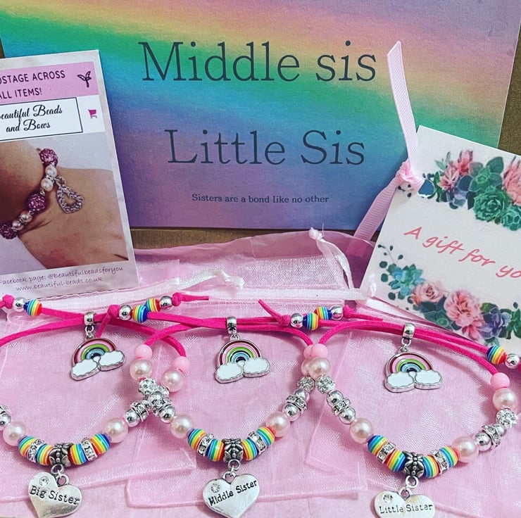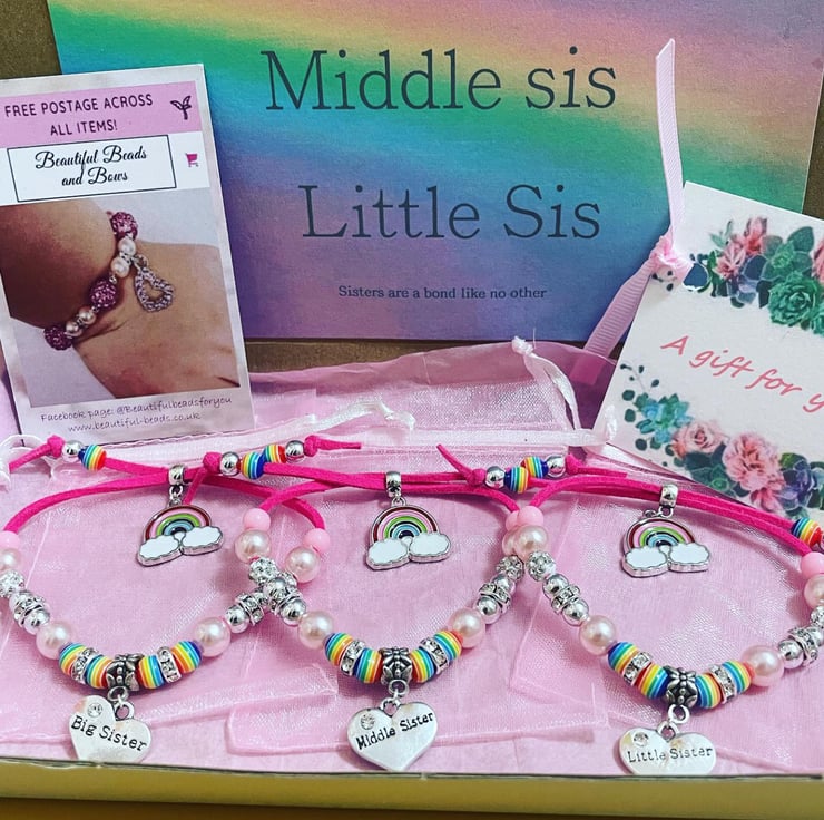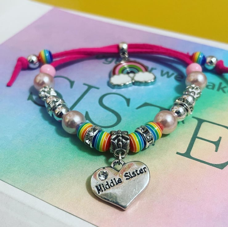 1x middle sister rainbow charm bracelets in letter box mini hamper as shown