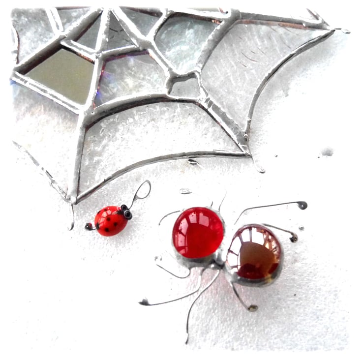 A spider's web, complete with red spider and a fly, a ladybird, both detachable.