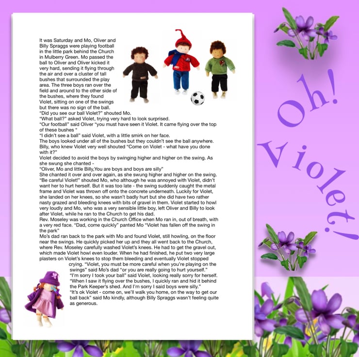 There are other children in Maisy’s class at school - Violet, Billy with his pet rabbit, Amber, Tilly, Rosie and her kittens, Amelia, Ruby, Marigold, Bobby with Max the dog, and the twins Oliver and Olivia, who have a puppy called Oscar. The dolls are all 26cm tall and baby Daisy is 16cm. Maisy and Mo love nothing more than having adventures with their friends. You can read about their adventures on my Facebook and Instagram pages - Maisy Muffin Rag Dolls and on my Mulberry Green Pinterest boards.