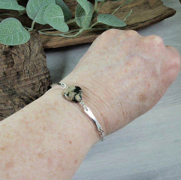 Gemstone Heart and Sterling Silver Bracelet. Adjustable fit