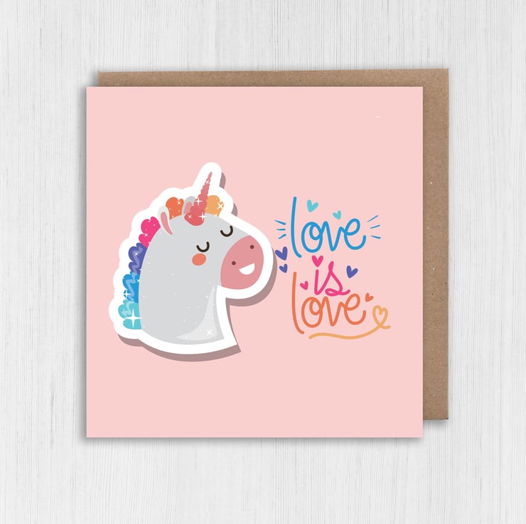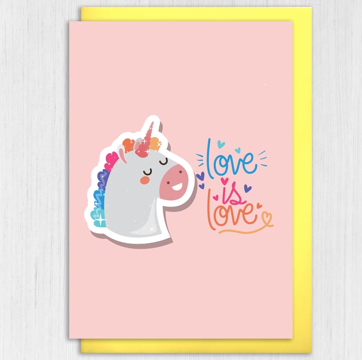 LGBTQ unicorn, love, lesbian, wedding card: Love is love (Size A6/A5/A4/Square 6x6")