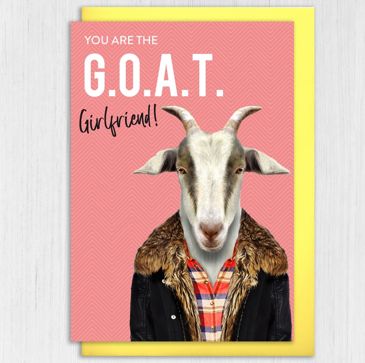 Goat in clothes Valentine's Day card for girlfriend: Greatest of All Time (G.O.A.T) Girlfriend (Animalyser) (Size A6/A5/A4/Square 6x6")