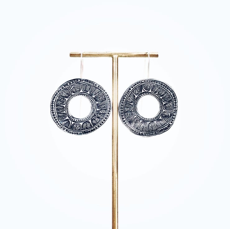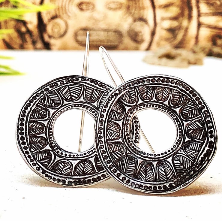 Handmade & textured with a beautiful, almost tribal pattern, impressed into the Silver. We use an oxidising solution to darken the design and really make it 'Pop!'