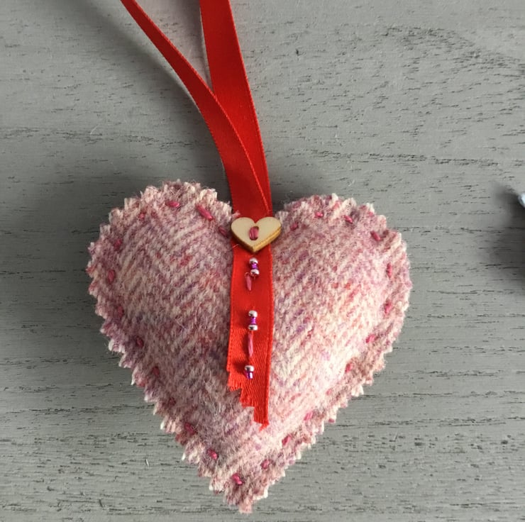 This Hanging Heart is padded, giving it a rounded effect. The Heart is 3 inches (8 cms) in height and diameter with a long 3 inches (8 cms) hanging loop.