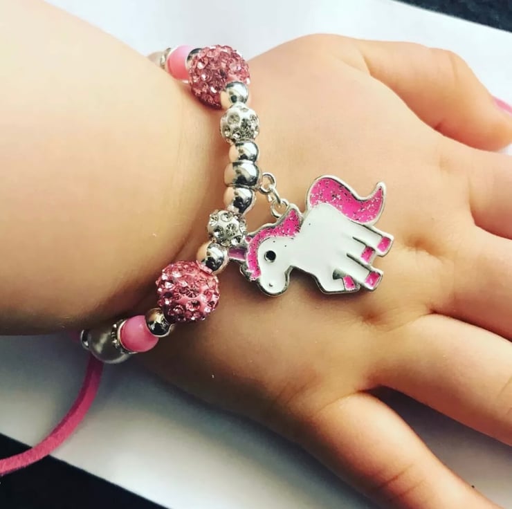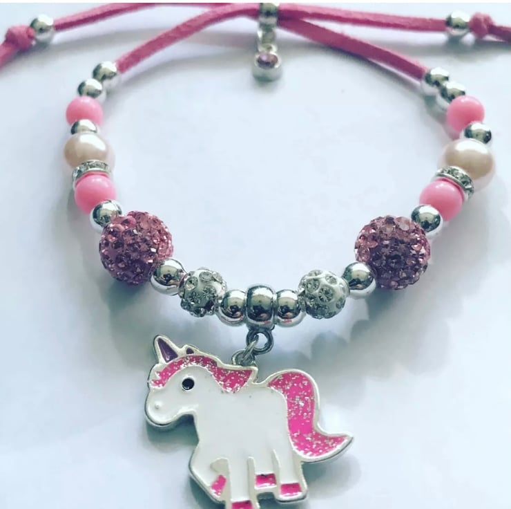 Unicorn charm bracelet for any size adjusts kids to adults adjustable size