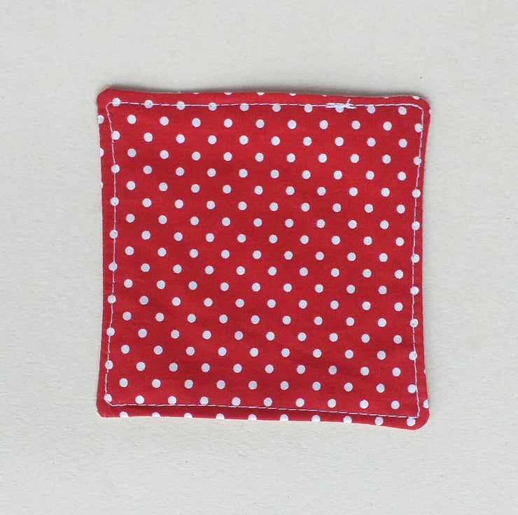 The coasters measure approximately 10cm square and come tied with a lovely red ribbon. Machine wash at 30 degrees, iron on a medium heat.