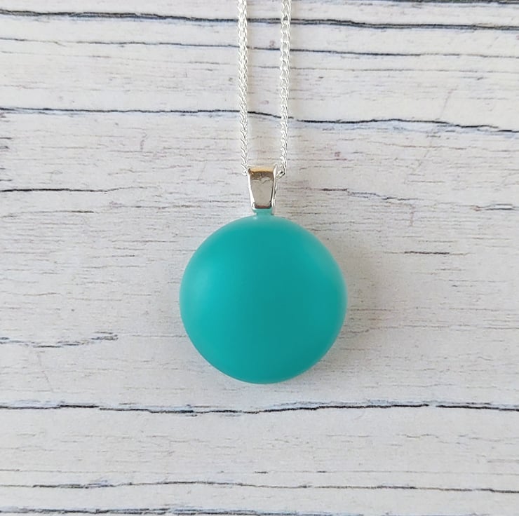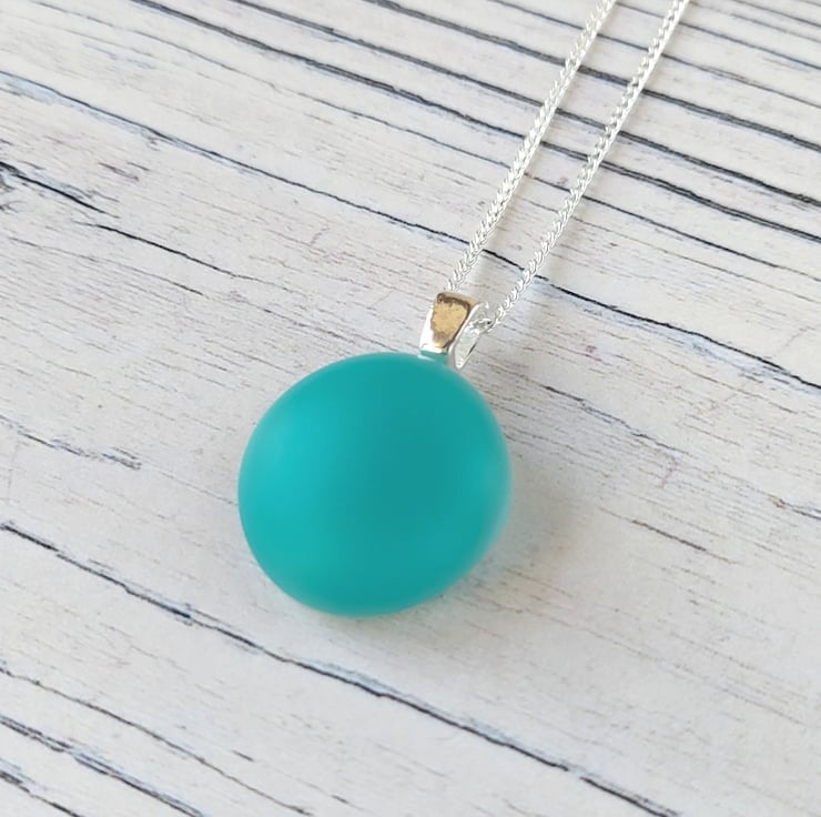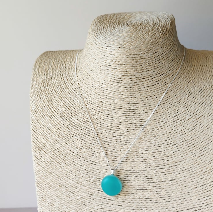 A pretty handmade frosted glass pendant in bright aquamarine. The glass has a satin finish just like seaglass - you'll find it difficult to resist touching the incredibly smooth tactile surface!