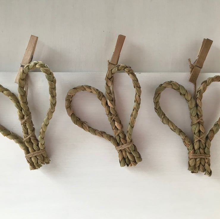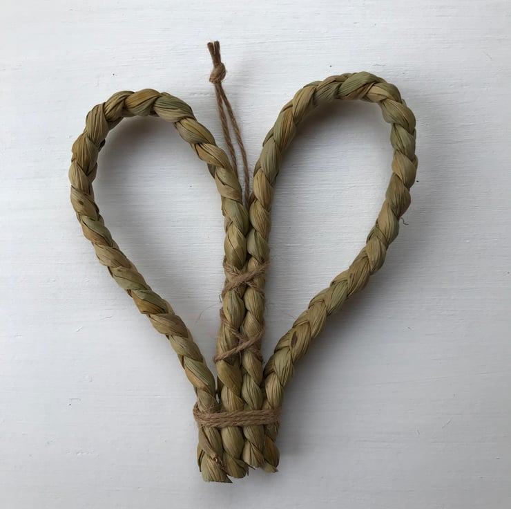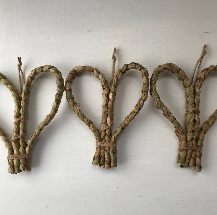 Hearts - in all their shapes, sizes and forms - are beautiful gifts and home decorations. These pretty little rush hearts, traditionally crafted from a simple 3-strand plait, will adorn any room in your home.