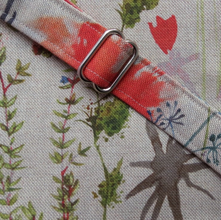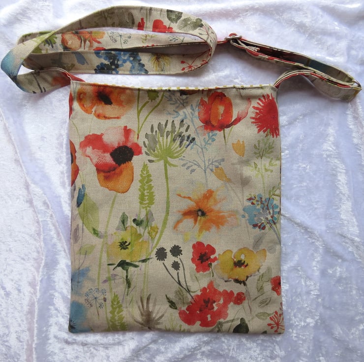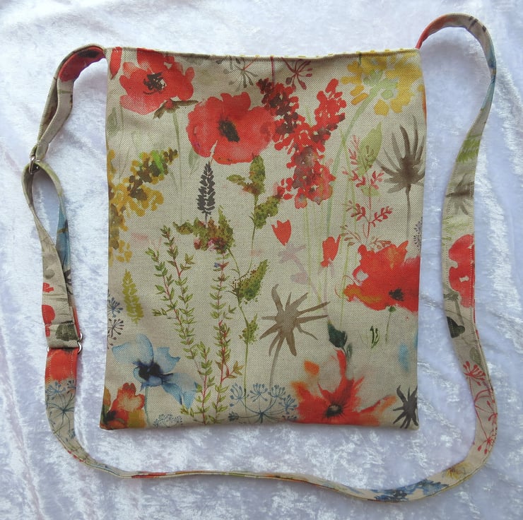 The bag is made from a medium weight cotton, with a wildflower design.
