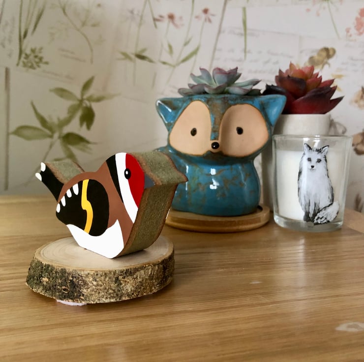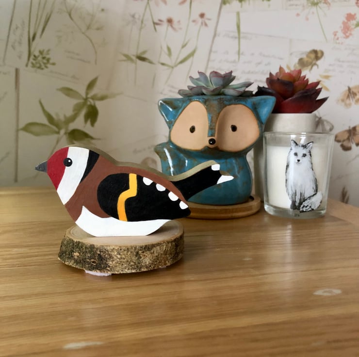 This freestanding handpainted goldfinch is the perfect gift for an avid bird lover or someone who loves quirky decorations.