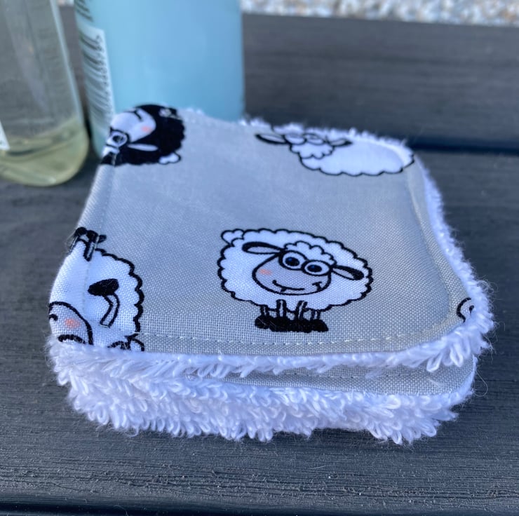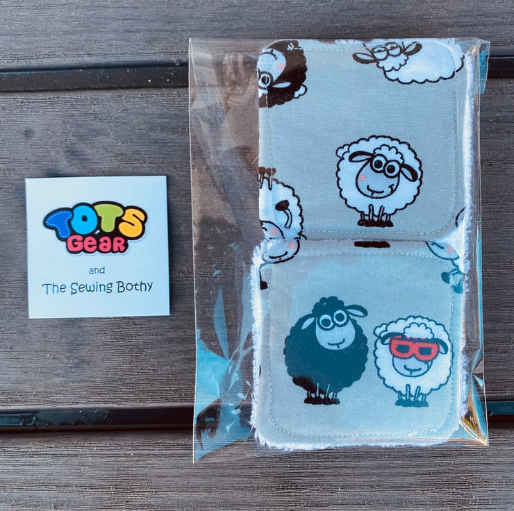 Cotton towelling pads with decorative cotton fabric on the other side.