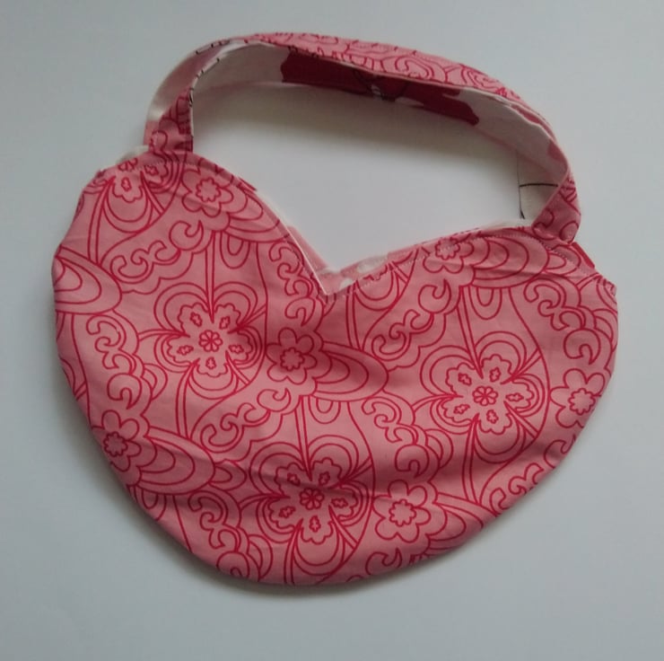This is a heart shaped fabric gift bag. It is reversible so you get a choice of two different designs. All you need to do is turn the bag inside out to swap between the two designs!!